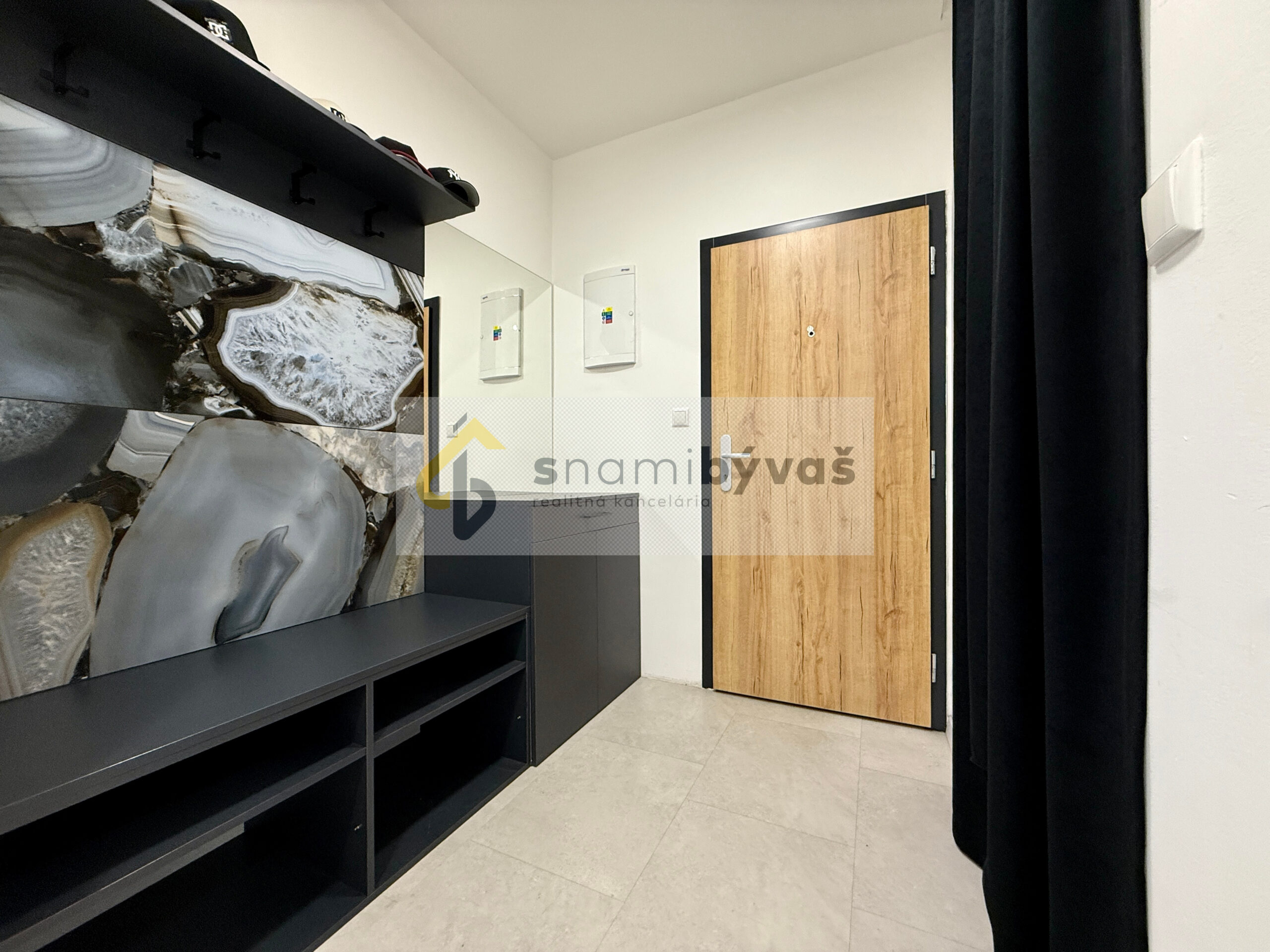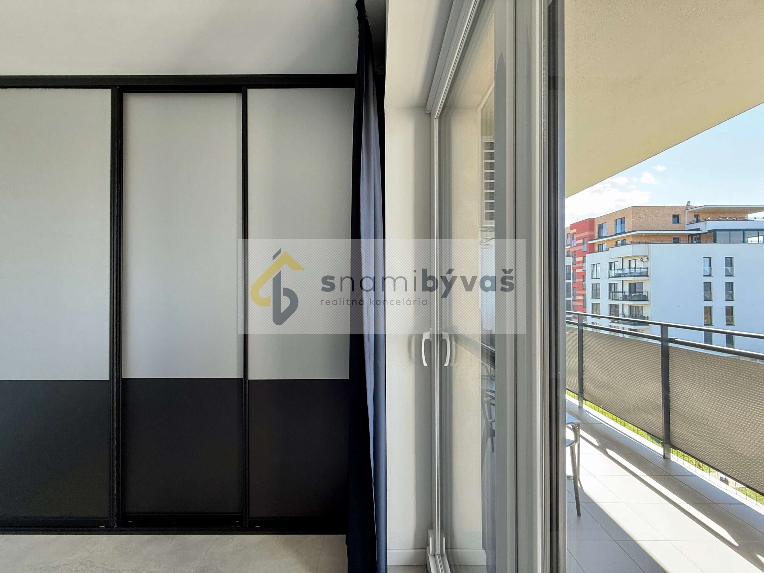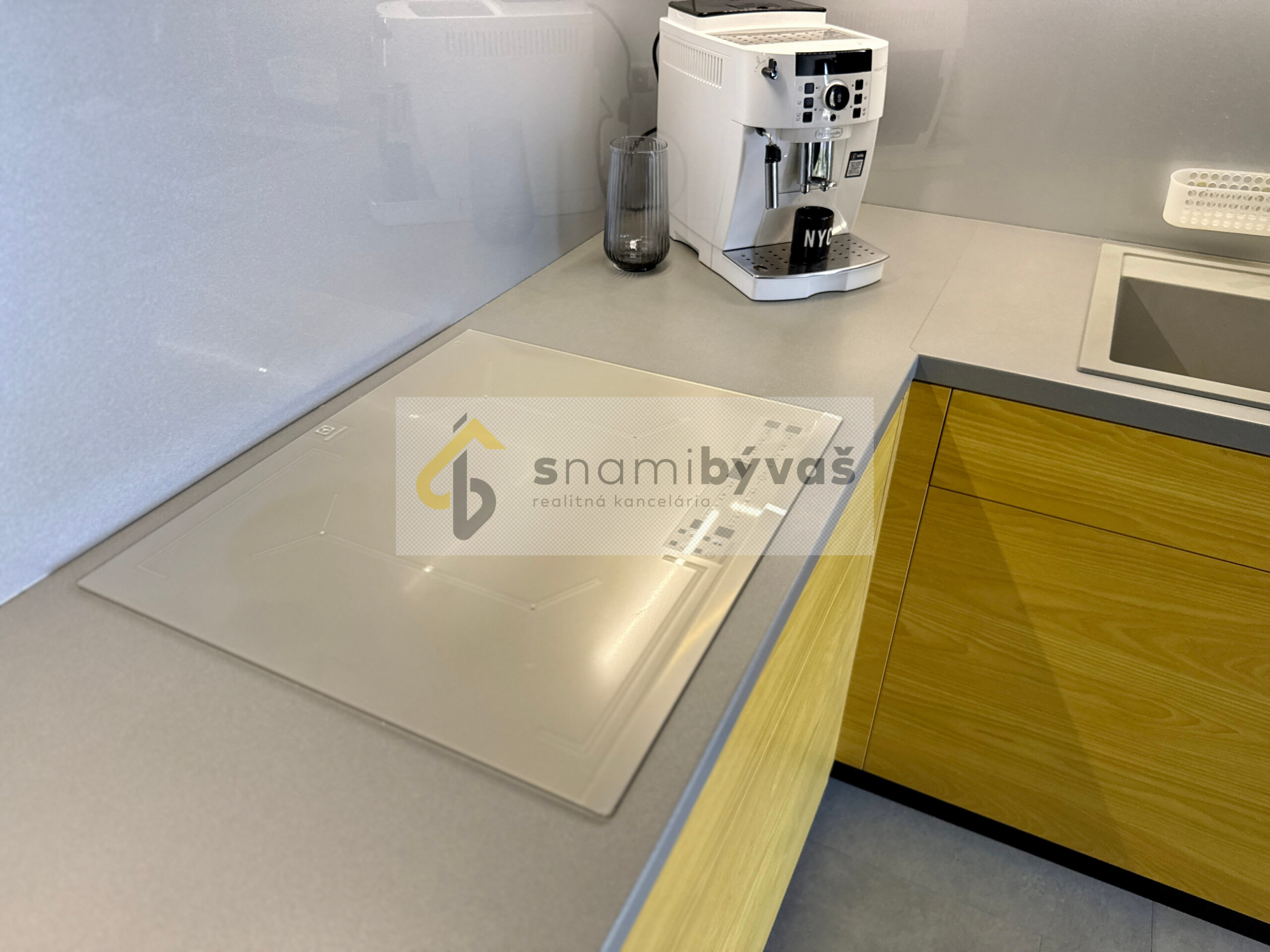 Dennú časť bytu tvorí priestranná obývacia izba prepojená s jedálňou a kuchynskou linkou na mieru so zabudovanými spotrebičmi. Čo určite oceníte je umývačka riadu umiestnená vo výške pracovnej dosky a rovnako aj vyhradený priestor pre veľkú americkú chladničku. Z dennej časti ako aj z oboch spální sa vstupuje na slnečnú 14 m2 terasu, ktorá ponúka nádherný výhľad na mesto a do parkovo upraveného oploteného areálu.